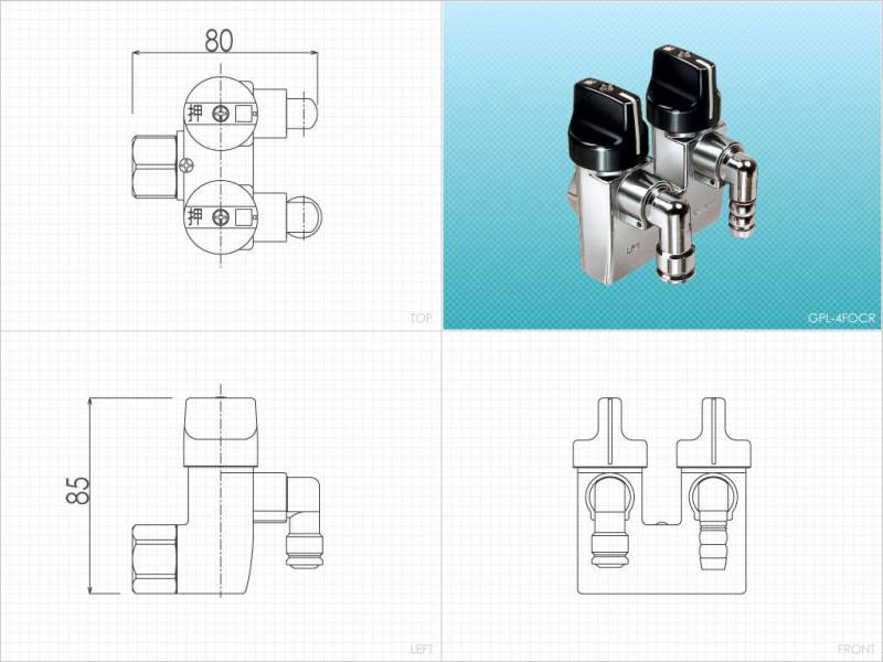プロパン用 LPG ガスコック ON-OFF ヒューズ ガス栓 ヒューズコック 伊藤鉄工 壁用 2口 コンセント左+ホースエンド右 取付部自在式 GPL-4FOCR