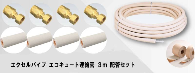【13時迄は当日発送 日祝除く】 エクセルパイプ エコキュート 連絡管 用 エコロール 3m 高耐候性被覆 架橋ポリエチレン PE 配管セット 継手 4個付