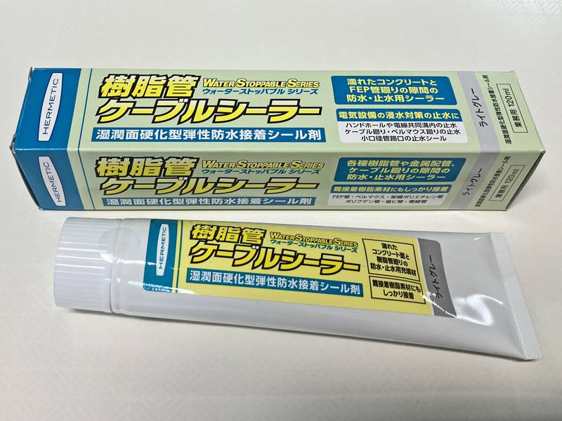 ヘルメチック 樹脂管 ケーブルシーラー チューブタイプ 難接着材料も接着 ライトグレー を追加しました。