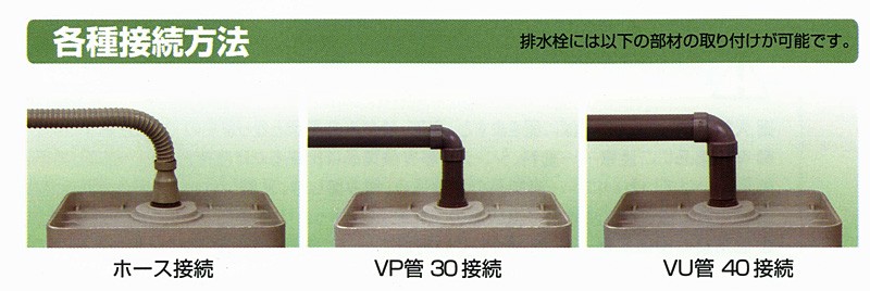 ・ホース接続、VP管30接続、VU管40接続の3種類の接続方法が選べます。