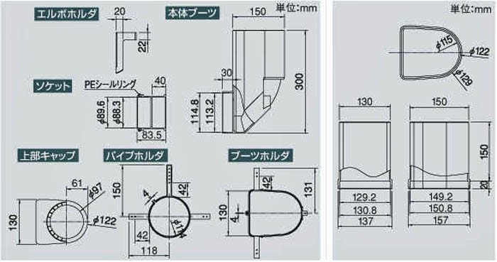 ・施工の際にはS、VU100/VU75のパイプ、VU LL(大曲L)が別途必要です。