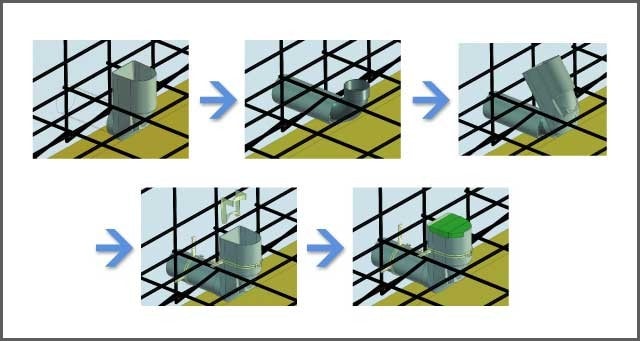 ・90度立ち上げ形状のため振り回し配管を行う必要がありません。